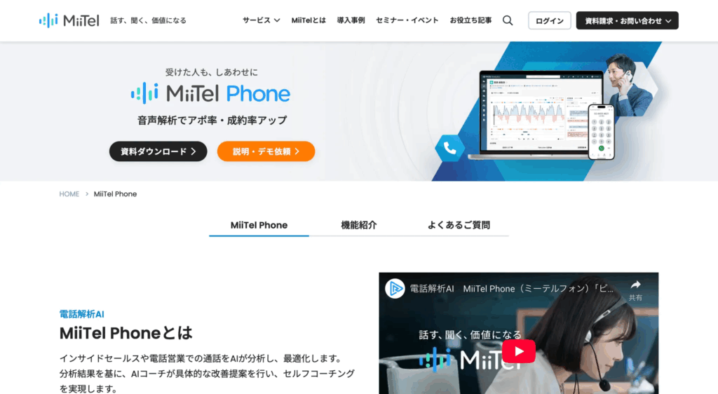 株式会社RevCommが提供する、電話解析AIツール。インサイドセールスや電話営業での通話をAIが自動で録音・文字起こし・解析し、営業スキルを定量的に可視化します。