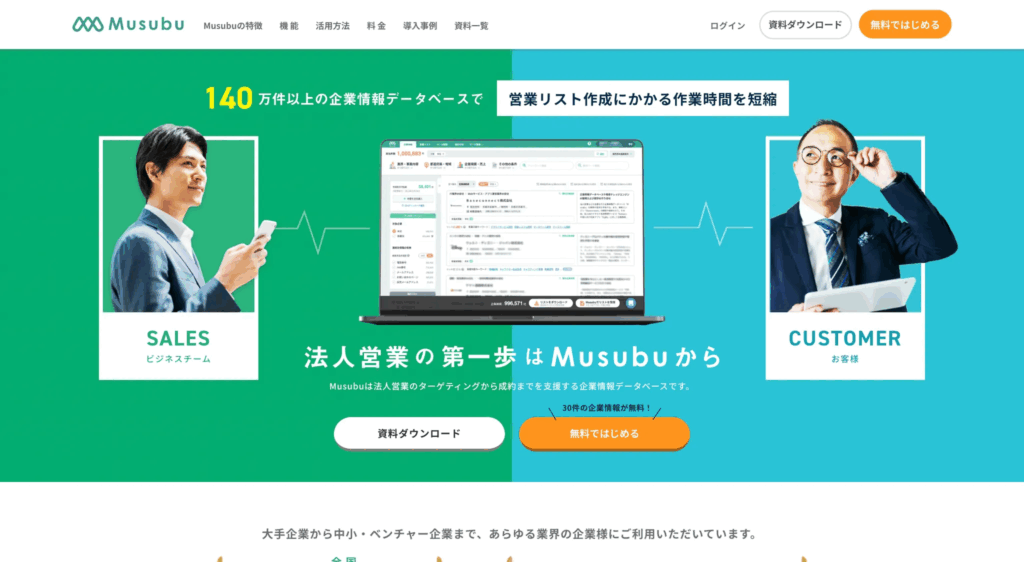 導入企業では商談化率80%、初月から10件の商談獲得といった成果が報告されています。SalesforceやHubSpot、Marketoなど主要なSFA・MAツールとも連携可能です。
