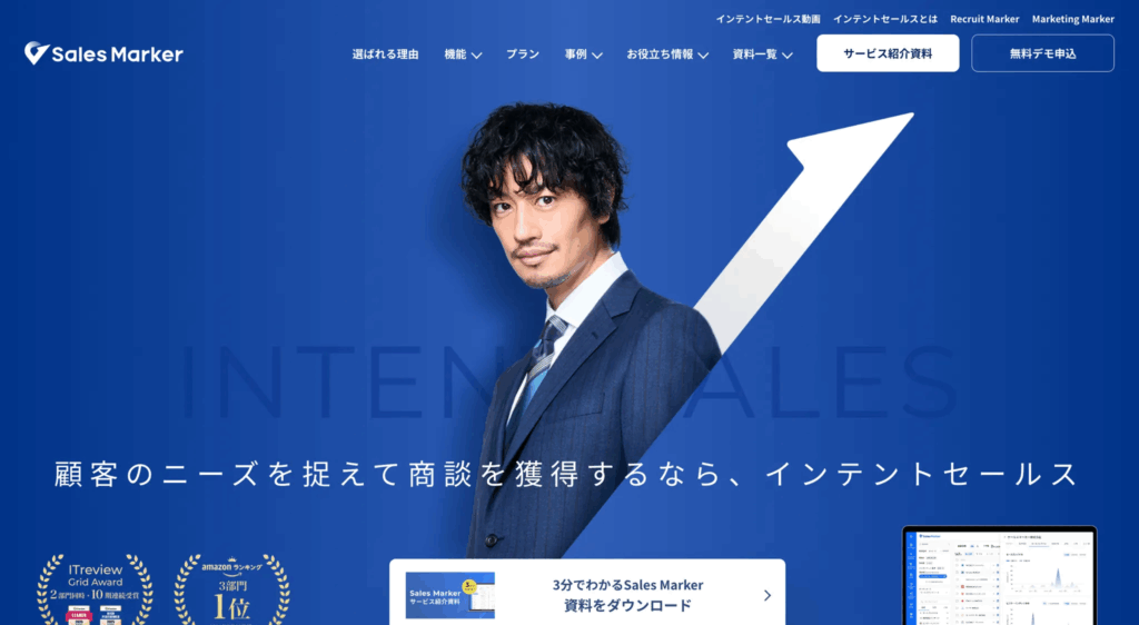 株式会社Sales Markerが提供する、インテントセールスを実現するアウトバウンド特化型ツール。企業のWeb検索行動データから興味・関心を把握し、「今まさに検討している企業」を自動で特定してアプローチできます。