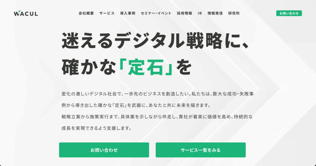 株式会社WACULは、独自に蓄積した成功・失敗事例データやビッグデータ分析、AIを活用したマーケティングテクノロジーを駆使し、ユーザー行動を中心に据えたメディア設計でコンバージョン最大化を目指しているのが特徴です。自社で蓄積したノウハウを活かし、成果につながりやすいパッケージテンプレートを基盤としているため、スピーディーで低コストな導入が可能となっています。