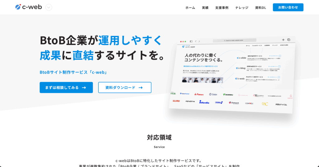 対応業務範囲 | 戦略立案、サイト構築、SEO対策、記事制作、UI/UX改善、CTA設計、ホワイトペーパー制作、フォーム最適化、運用改善提案 |