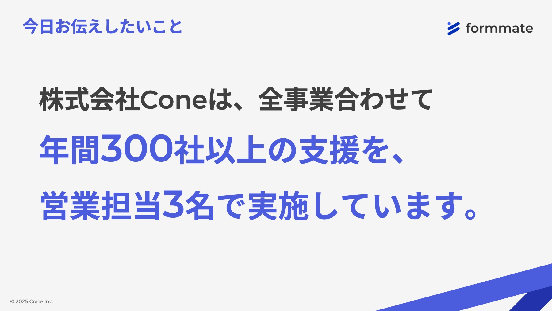 営業 / マーケティング部で営業効率化が課題に感じているマネージャー や小規模の中小企業経営者全般を対象に「年間300社以上の企業を営業3名で対応するフォームの使い方」をテーマに登壇した『ITトレンドEXPO 2025 Spring』の登壇資料を調整したものです。
